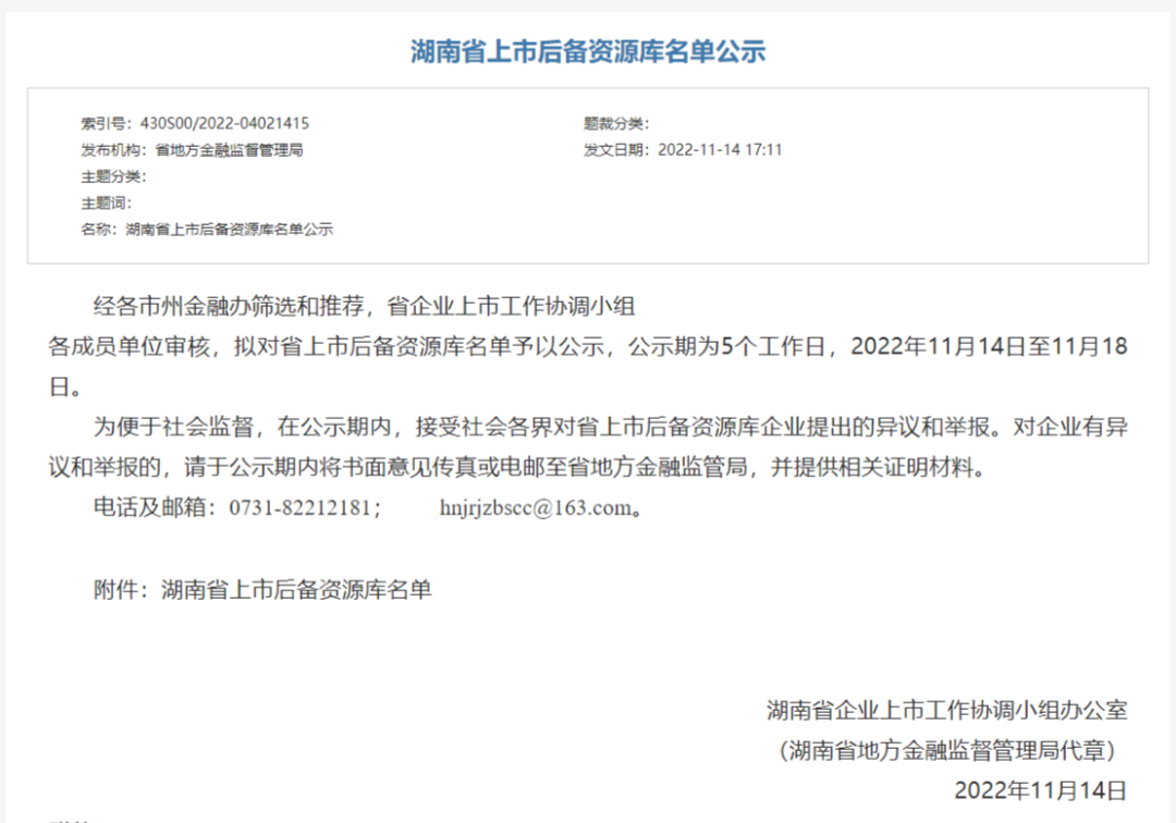 11月14日至18日,湖南省地方金融监督管理局在其官网对最新的湖南省上市后备资源库名单进行公示。从公示的名单来看,今年共有816家企业拟入库。