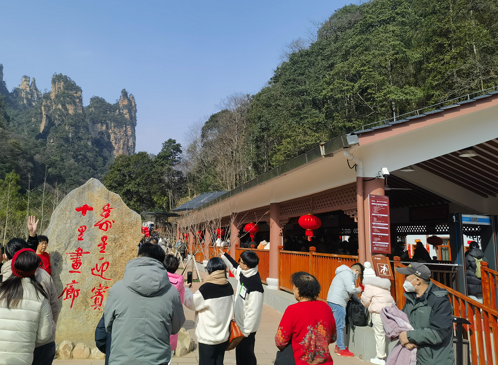 据金鑫介绍,今年春节的客流情况是近三年来最大的一次,且有的单日客流已经超越了同期的历史最高纪录,正月初三单日客流量甚至超过了6万人。从数据上来看,相较于2019年,环保客运公司购票人数增长了48%、杨家界索道增长8.35%、十里画廊观光电车增长6.51%、宝峰湖公司增长78.12%。“数据喜人,收入和购票人数都是双增长。”