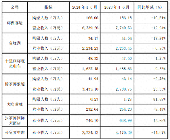 8月26日,张家界旅游集团股份有限公司(以下简称“张家界”)发布2024年半年报。上半年,张家界实现营业收入1.74亿元,同比减少2.87%;净利润-6116.29万元,同比减少49.13%。
