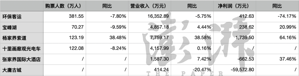 张家界旗下成员公司2024年财务数据。澎湃新闻记者唐莹莹制图