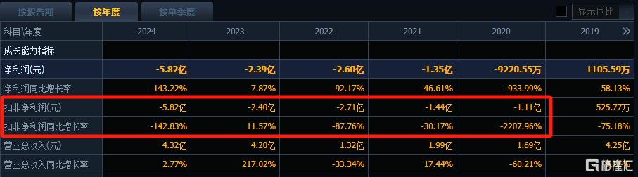 值得注意的是,张家界扣非净利润已经连续5年亏损。具体来看,2020年至2024年分别为-1.11亿元、-1.44亿元、-2.71亿元、-2.40亿元、-5.82亿元,合计亏损约13.48亿元。