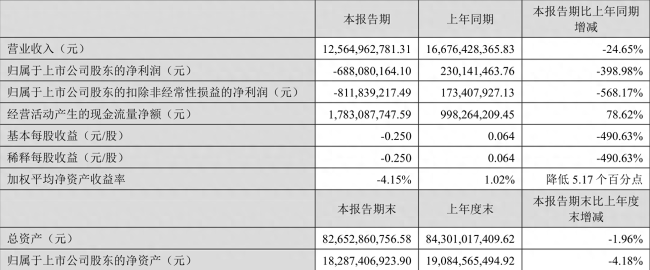 晨鸣纸业(000488)日前披露2023年半年度报告。2023年上半年,公司实现营业总收入125.65亿元,同比下降24.65%;归母净利润亏损6.88亿元,上年同期盈利2.30亿元;扣非净利润亏损8.12亿元,上年同期盈利1.73亿元;经营活动产生的现金流量净额为17.83亿元,同比增长78.62%;报告期内,晨鸣纸业基本每股收益为-0.25元,加权平均净资产收益率为-4.15%。
