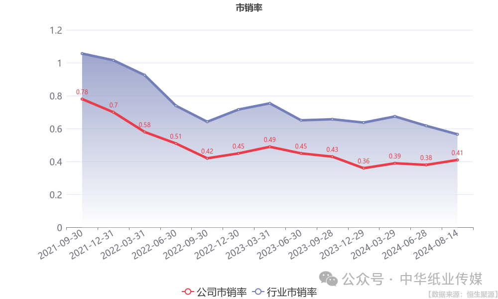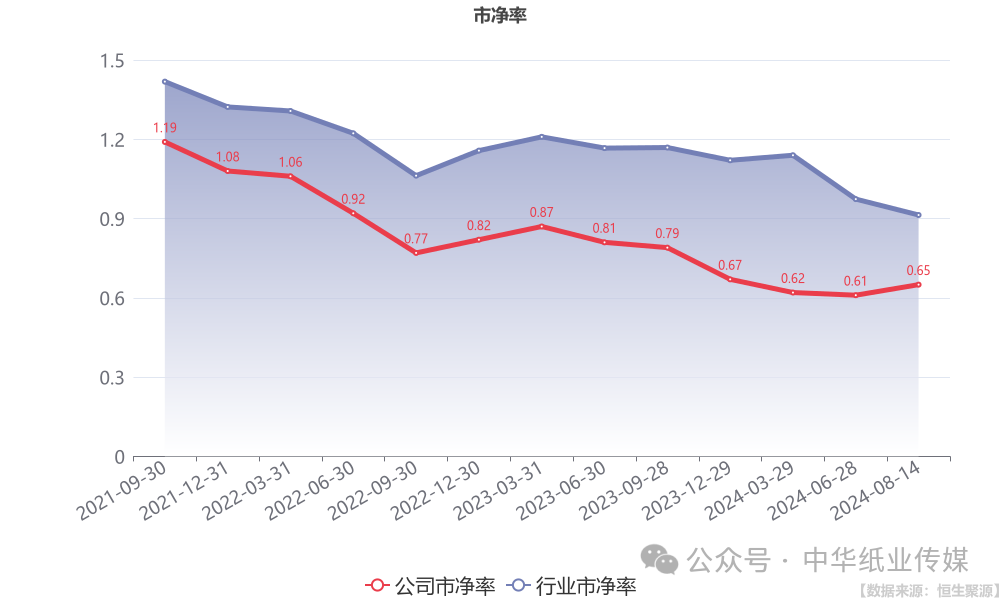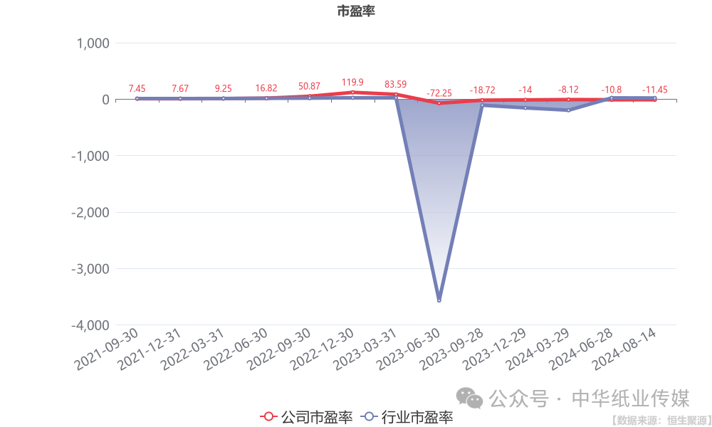 以2024年08月14日收盘价计算,晨鸣纸业目前市盈率约为-11.45倍,市净率约为0.65倍,市销率约为0.41倍。
