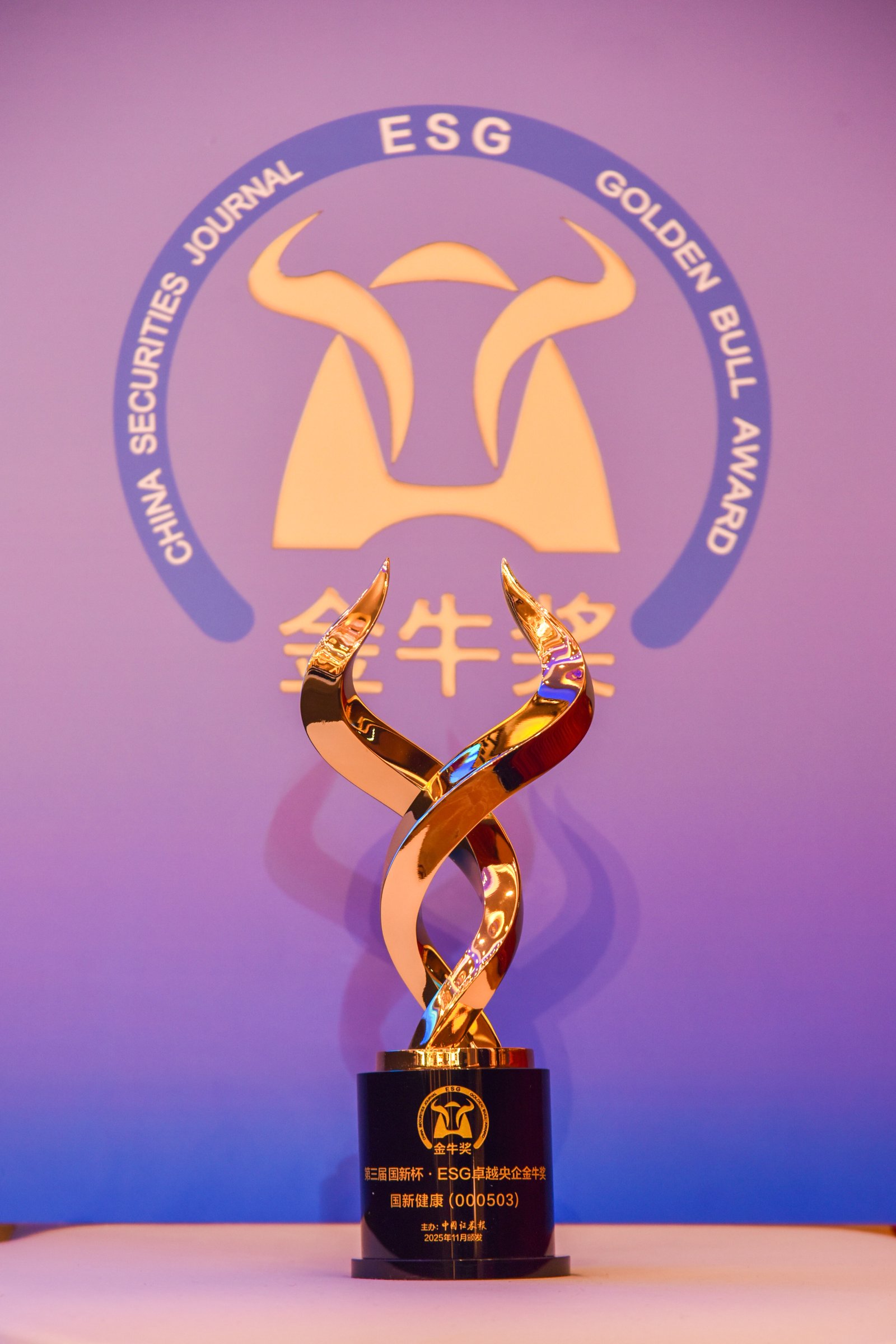 11月26日,以“治善致远绿动未来”为主题的2025年金牛企业可持续发展论坛暨第三届国新杯·ESG金牛奖颁奖典礼在江苏苏州举行。本次大会由中国证券报、 中国国新控股有限责任公司 主办, 国新证券 承办, 苏州工业园区城市发展研究院 全面战略支持。备受瞩目的ESG金牛奖榜单正式揭晓, 国新健康 凭借在ESG领域的创新实践及优异成绩荣获“ESG卓越央企金牛奖”。