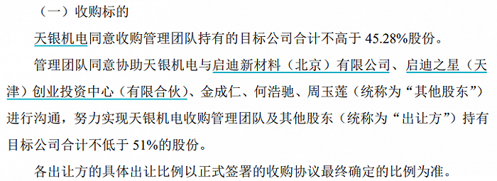 天银机电与天兵电子签署的《收购意向书》中,标的管理团队将助上市公司与其他股东沟通,实现不低于51%股份的收购,以实现对标的公司的控股和管理。此次新金路更希望拿下标的100%股权。