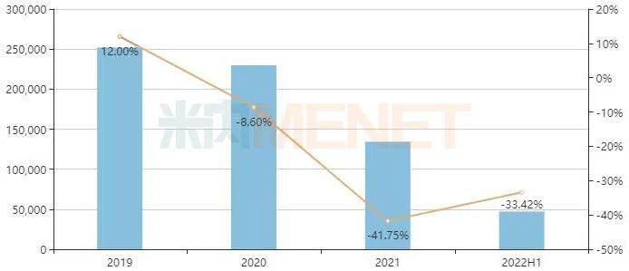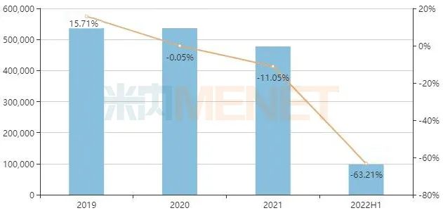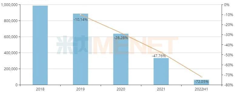 泮托拉唑注射剂是首个被集采的PPI注射剂,其与泮托拉唑口服常释剂型同时被纳入第四批集采。米内网数据显示,泮托拉唑2016年、2017年在中国公立医疗机构终端销售规模均超过100亿元,其中泮托拉唑注射剂销售额自2017年开始呈现连续下滑趋势,泮托拉唑口服常释剂型自2020年开始出现下滑。2021年泮托拉唑销售规模超过33亿元,同比下滑47.76%,2022年上半年较去年同期下滑72.05%。