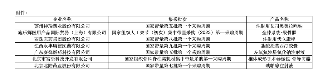 这些企业涉及的药品和医疗器械产品均曾在国家级集采中成功中标。
