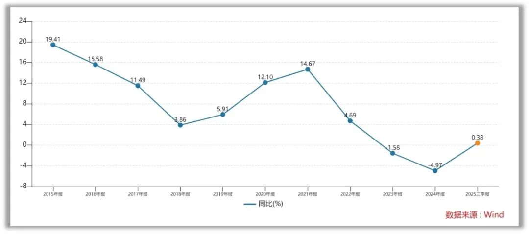 丽珠集团 近五年营收情况 如果从更长的时间维度来看,近几年丽珠的收入增速已经处于十年间的底部区域。