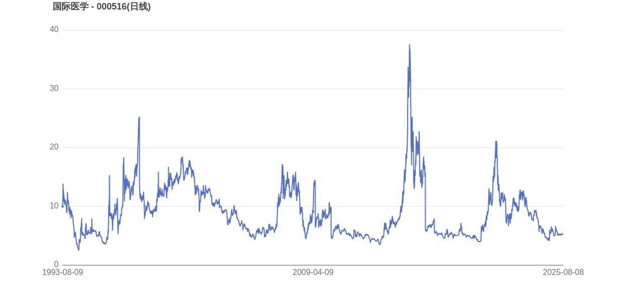 国际医学自1993年08月09日上市至今,已迎来32周年。从上市首日收盘价为9.95元、市值5.04亿元,到如今市值达到120.23亿元。