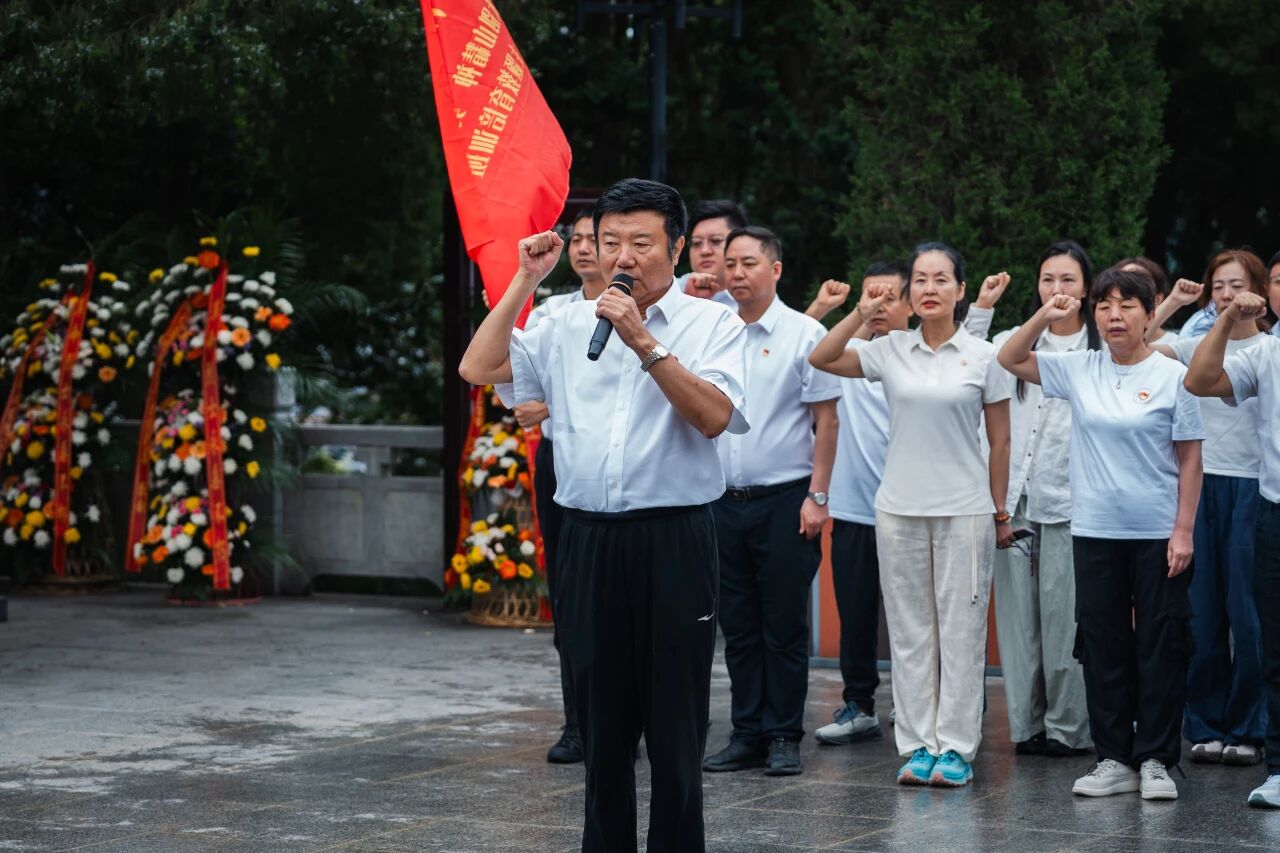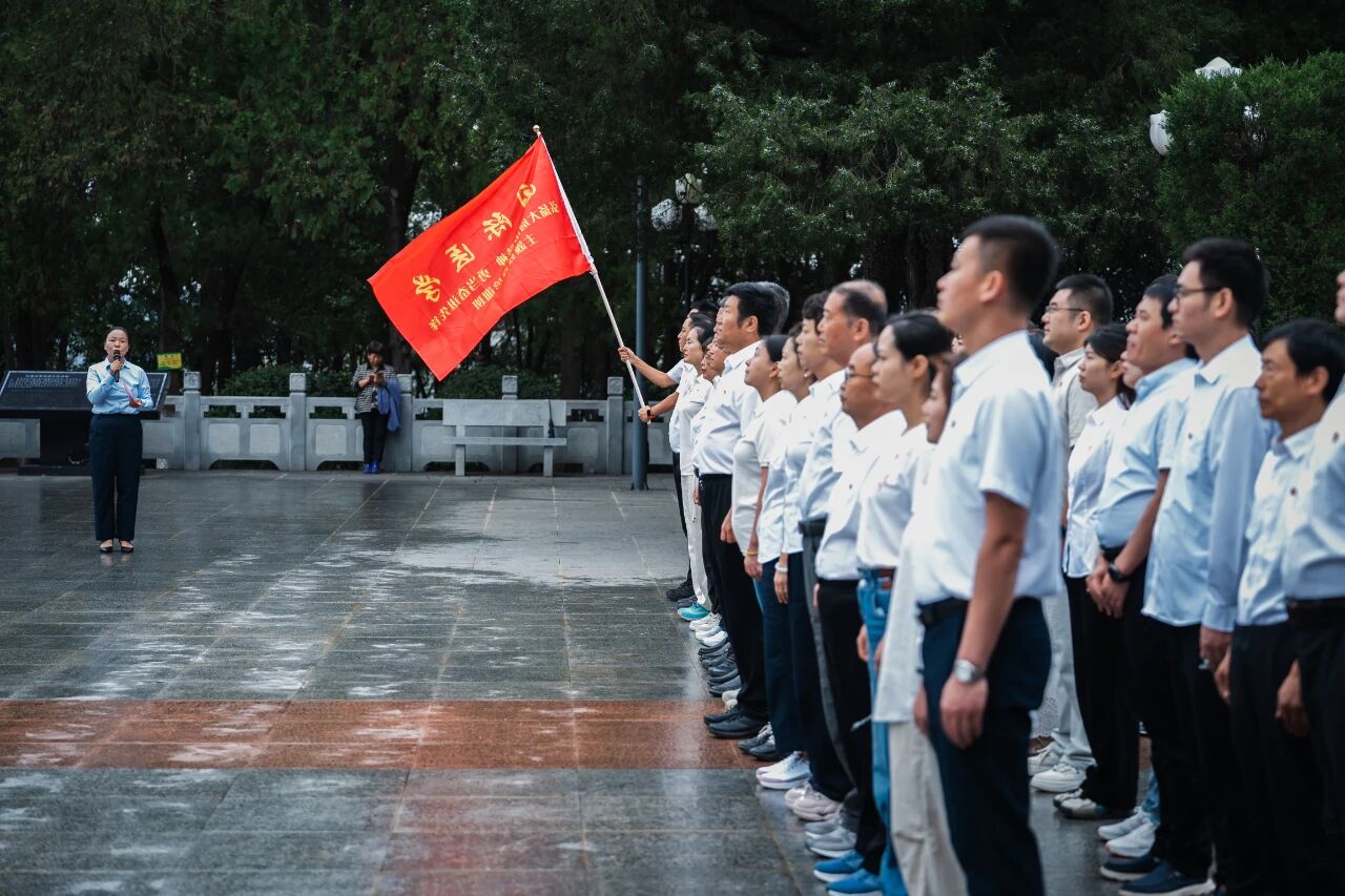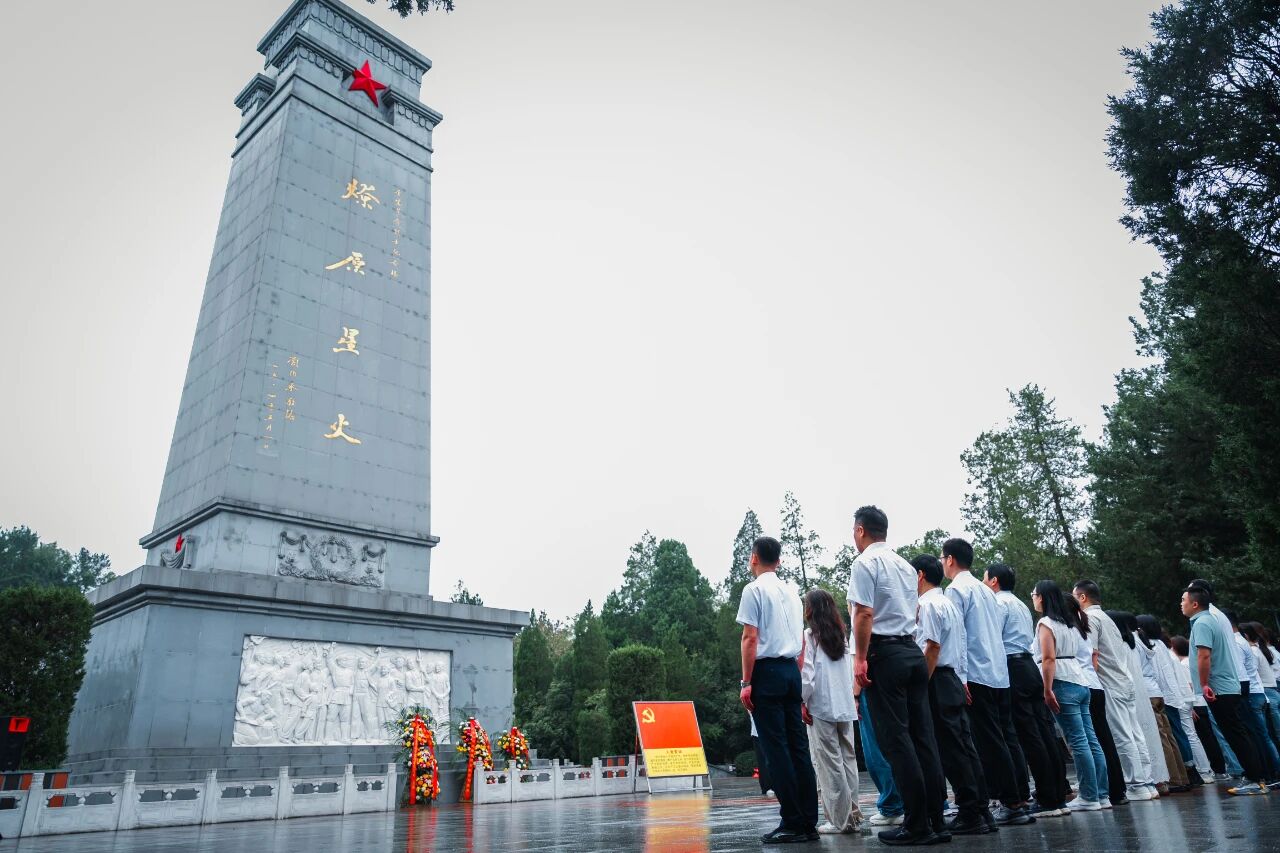 驻足金寨红军广场,凝视着镌刻有“燎原星火”四个大字的烈士纪念塔,学员们沿阶而上,敬献花篮,肃立鞠躬,静默致哀,缅怀长眠于此的革命先烈。在党委副书记、总裁助理范郁会同志的带领下,全体学员举起右拳,重温入党誓词,铿锵誓言回荡广场。