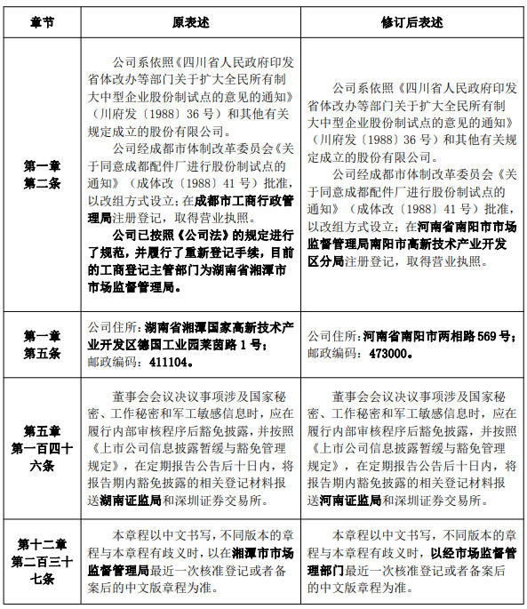 公告称,公司董事会稍早前审议通过了《关于变更公司注册地址并修订的议案》,该议案尚需提交公司股东会审议。公告显示,伴随着注册地址的变更,公司拟修订的《公司章程》对应条款如下图:
