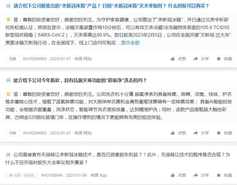 有投资者表示,“公司直接宣布无偿转让杀新冠冰箱技术,是否已损害股东利益?无偿转让技术的程序是否合规?为什么不召开临时股东大会审议相关事宜?”
