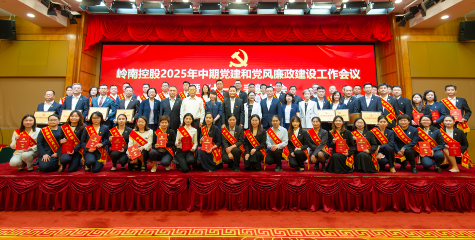 7月1日下午,岭南控股党委召开2025年中期党建和党风廉政建设工作会议暨“七一”表彰大会。公司党政领导班子成员、专职外部董事,各直属党组织负责人,总部及各企业党务、纪检、组织人事部门相关同志,受表彰人员、预备党员代表等约130人参加会议。