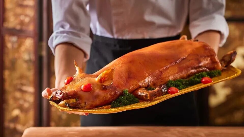 来尝尝传承非遗技艺的脆皮乳猪,表皮金黄酥脆,肉质鲜嫩多汁;离开时别忘了带走一盒酥脆咸香的鸡仔饼,把广式风味带回家!