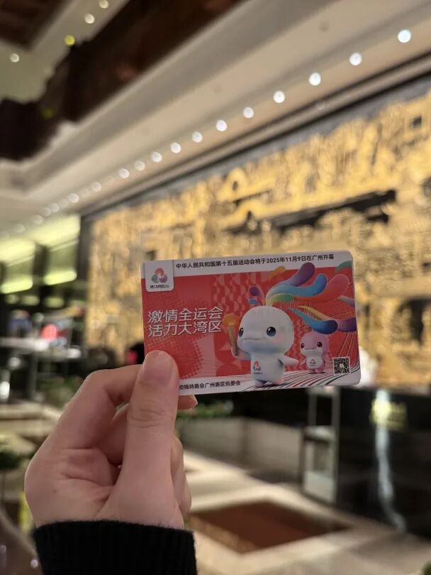 当体育盛事邂逅城市地标,广州花园酒店以“盛事与服务的高度融合”贯穿服务全程。从礼宾标识、文创展示到公共区域布置,全运氛围浸润空间肌理;赛事专属咨询台与服务通道,让宾客便捷衔接赛场激情。匠心打造的沉浸式主题服务——十五运主题房卡、定制茶点与客房专属点餐,让每一次入住都成为与盛事零距离的体验。