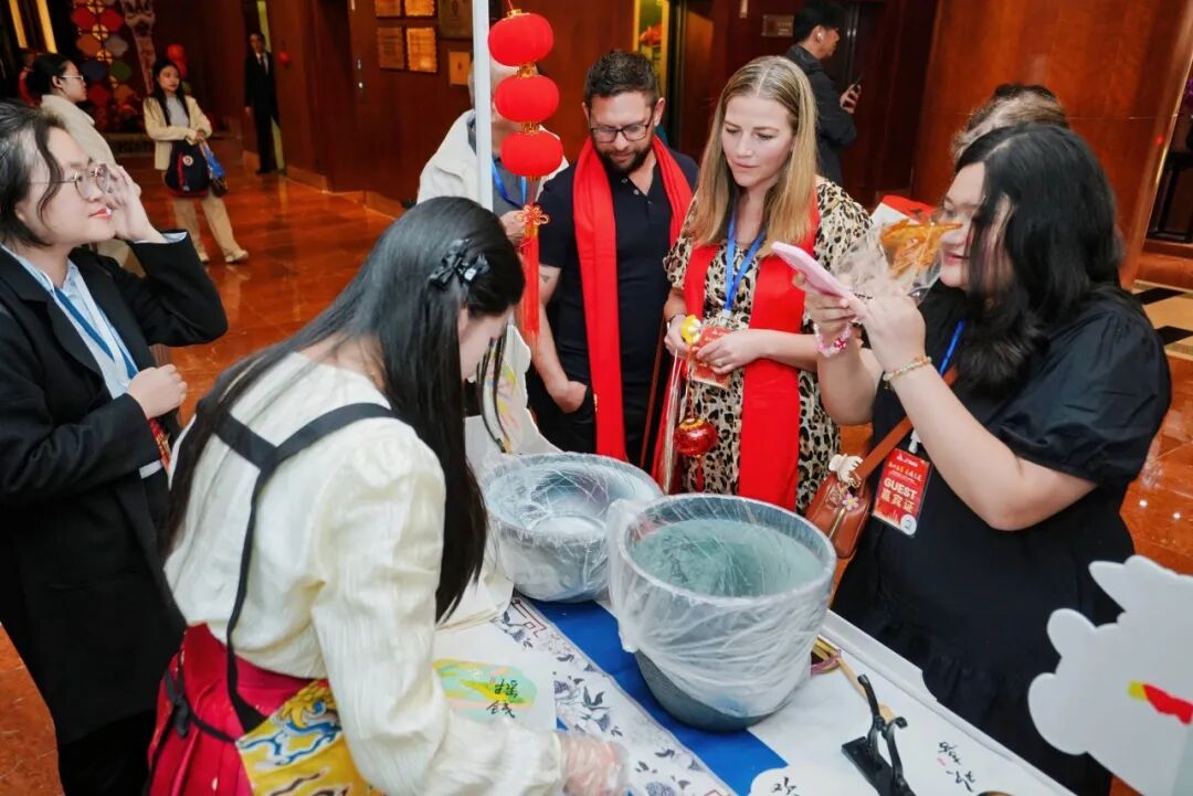 作为活动指定接待酒店,东方宾馆以“知情达礼,乐于服务”的理念,为远道而来的宾客打造了沉浸式的广府文化初体验。欢迎晚宴上,糖画、剪纸、漆扇、书法等非遗展示让国际友人亲手触摸传统;东方星厨现场制作的芝麻糊、虾饺皇等经典美食,用味蕾传递“食在广州”的匠心。
