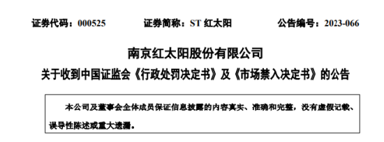 近日,ST红太阳(维权)披露公告称,收到证监会下发的《行政处罚决定书》和《市场禁入决定书》,公司及多位高管被警告,累计罚款1165万元。(ST红太阳维权入口)