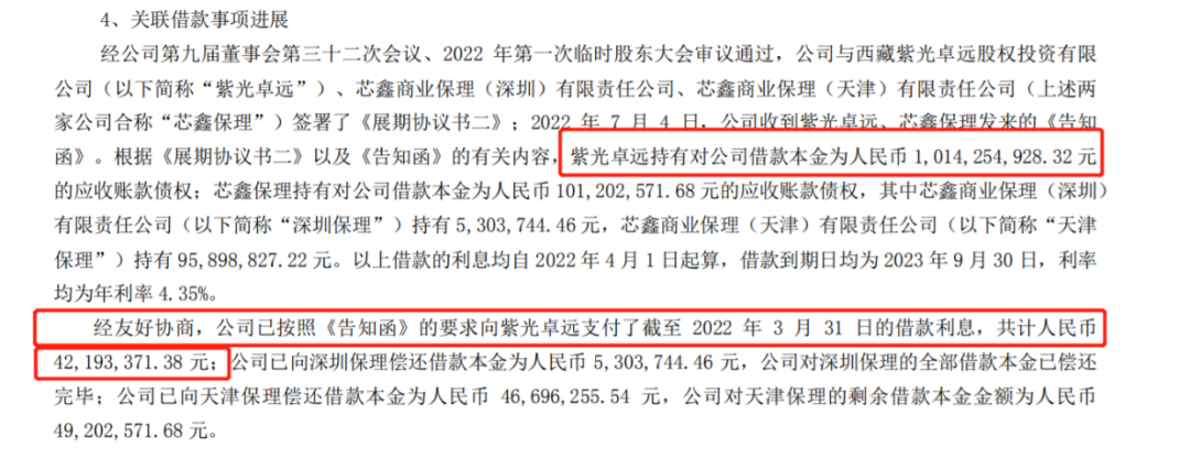 最大的掣肘还是债务问题。这是从美股回归A股时遗留的问题,至今仍未得到解决。根据财报,截至三季度末,公司与西藏紫光卓远股权投资有限公司、芯鑫商业保理(深圳)有限责任公司、芯鑫商业保理(天津)有限责任公司签署了《展期协议书二》。其中,紫光卓远持有借款本金为10.14亿元的应收账款债权,相关借款展期到2023年9月30日。