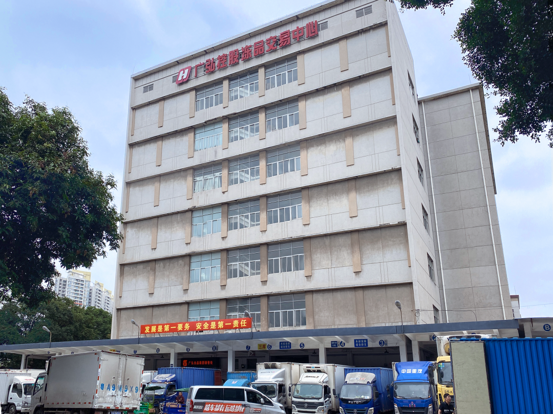 凌晨五点,当城市还在熟睡时,各类运输车辆已陆续驶入位于广州市中心城区的广弘食品冷库大院。这里的市场经营的冷冻猪肉类产品年交易额、交易量约占广州市市场份额的70%以上,现场一派繁忙景象。在冷库月台及交易中心,商户们正忙着打包装货,通过冷链物流配送车辆运到广州各大肉菜市场、餐饮店及学校、企业团体饭堂。