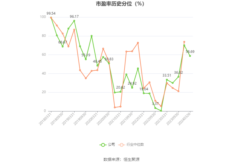 市盈率为负时,不显示当期分位数,会导致折线图中断。