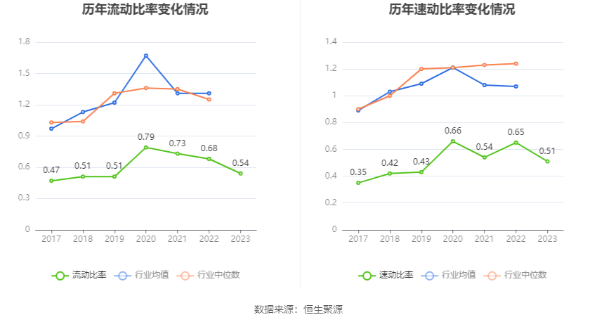 2023年,公司流动比率为0.54,速动比率为0.51。