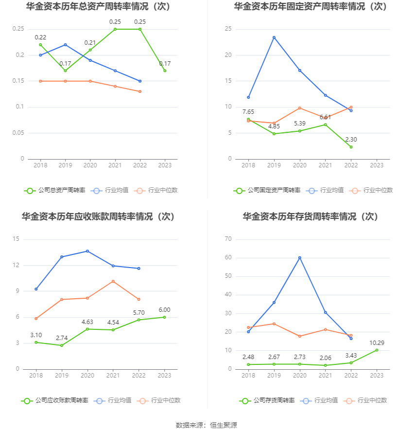 营运能力方面,2023年,公司公司总资产周转率为0.17次,上年同期为0.25次(2022年行业平均值为0.15次,公司位居同行业9/33);公司应收账款周转率、存货周转率分别为6.00次、10.29次。