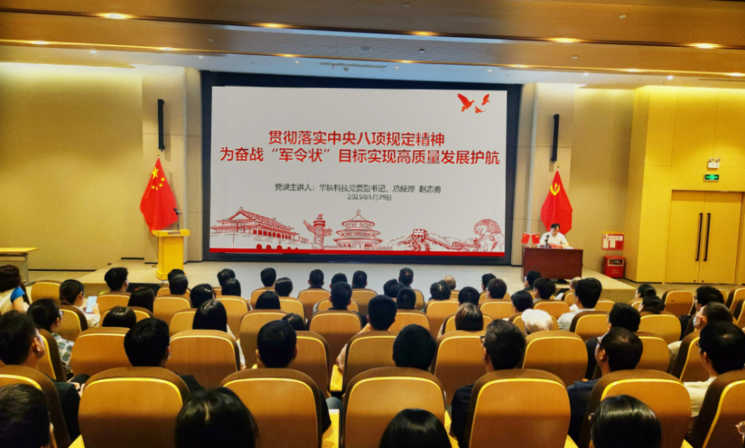 为推动开展深入贯彻中央八项规定精神学习教育走深走实,落实落细全面从严治党凝聚奋进力量,5月29日上午,华映科技党委副书记、总经理赵志勇以“贯彻落实中央八项规定精神,为奋战‘军令状’目标实现高质量发展护航”为题讲授专题党课。华佳彩经营班子成员、经理级以上主管、全体党员及工会委员等百余人参加。