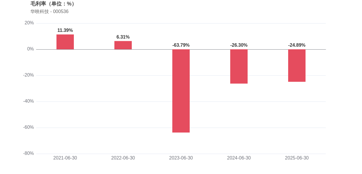 从反映盈利质量的指标来看,华映科技净利率由上年同期的-65.28%进一步下滑至-66.15%,而毛利率则从-26.30%改善至-24.89%,净资产收益率为-45.04,已连续4年同期下滑。