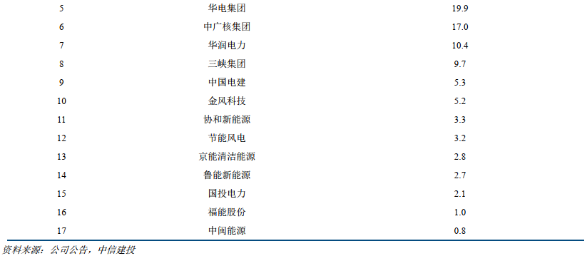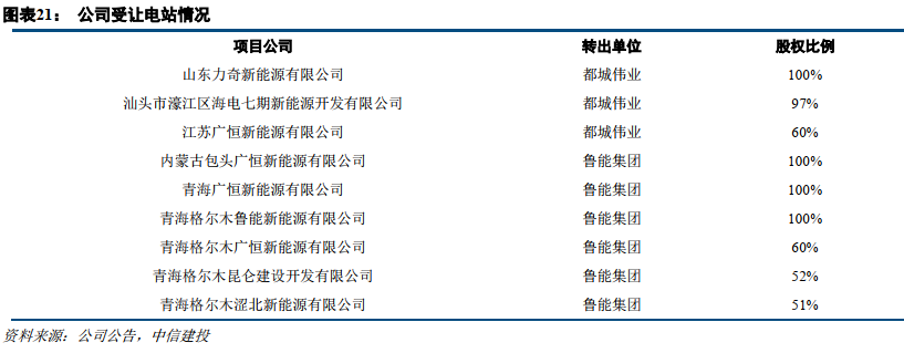 股东背景强大,管理层经验丰富。公司控股股东中国绿发是专注于绿色产业发展的央企,董事长由鲁能集团董事长刘宇兼任。鲁能新能源管理层均曾在鲁能集团及其下属新能源公司任职,拥有丰富的行业经验及资源积累。根据公司公众号披露,中国绿发的发展目标为,在“十四五”末期跻身行业前十,新增装机容量3000万千瓦以上,而鲁能新能源为中国绿发旗下绿色能源运营平台,且已经获得了大股东的多个电站转让。