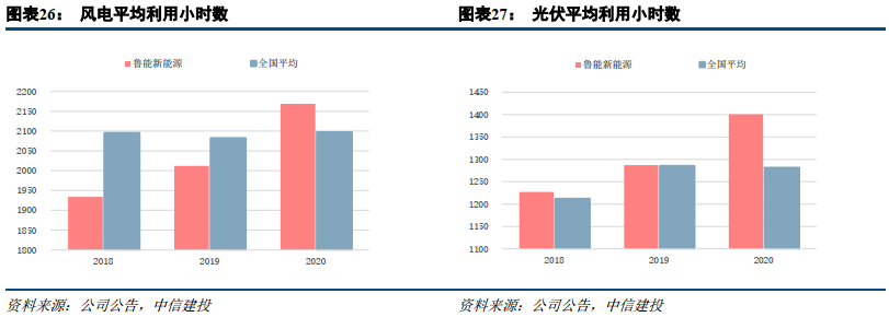 平均利用小时数提升,运营效率高于全国平均水平。2020年以前,公司风电设备平均利用小时数显著低于全国平均水平,与全国平均相比,2018年低161个小时,2019年低70个小时,2020年,受益于区域内来风情况较好,风电设备平均利用小时数为2169个小时,已经高于全国平均水平72个小时,运营效率得到极大改善。光伏设备方面,2018、2019年分别较全国平均水平高15、2个小时,2020年平均利用小时数1401个小时,高于全国平均水平120个小时,运营效率优势显著。
