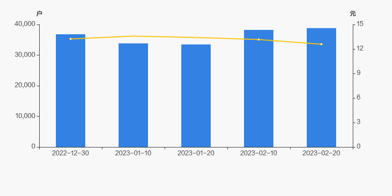 2022年12月30日至今,公司股东户数有所增长,区间涨幅为5.46%。2022年12月30日至2023年2月20日区间股价下降4.84%。