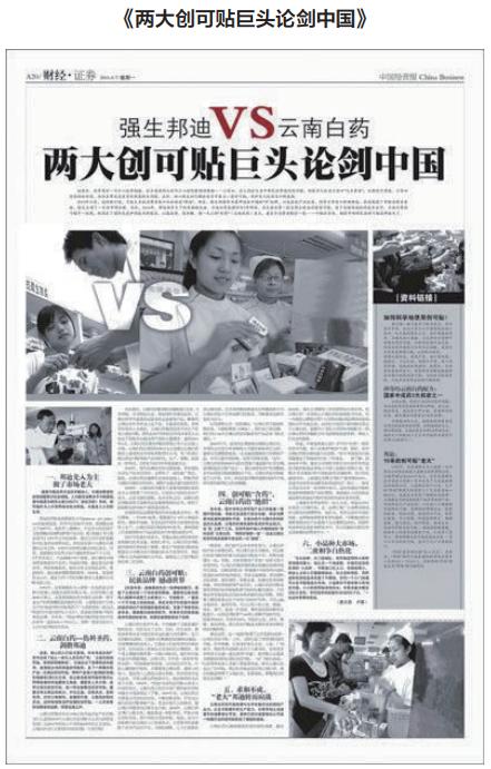 其次,云南白药凭借主流媒体解决消费者购买的信任感问题,塑造消费者对品牌的认知。以云南白药创可贴为例,在上市之初夹杂在行业领先品牌邦迪和其他具有价格优势的杂牌创可贴的两级竞争格局中,除了以“含药的创可贴”为差异化定位打开市场之外,它在传播上形成了层层递进的攻势。第一,对标邦迪,运用主流媒体营造新闻事件,在国内主要经济类媒体上刊登了《两大创可贴巨头论剑中国》一文,巧妙传递云南白药创可贴将成为行业下一个巨头的观念。第二,凭借央视、广播、报纸三大黄金媒体构建大传播格局,央视投放重形象传播,广播投放重功能传播,报纸投放形成报花+专栏+新闻稿的模式。云南白药创可贴还与重点市场的主流报媒和地方媒体合作,重点突破,推动购买。