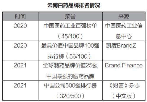 创制于1902年的云南白药,名列首批国家创新型企业,是享誉中外的中华老字号品牌。经过多年耕耘,云南白药在Interbrand、BrandZ、Brand Finance等品牌排行榜中持续稳居行业前列,品牌价值得到印证。