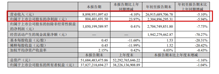 从最新披露的业绩报来看,2022年前三季度,云南白药实现营收269.15亿元,同比减少5.10%;实现净利润23.04亿元,同比减少5.94%。截至2022年9月末,云南白药交易性金融资产持有期间公允价值变动损益为-7.52亿元,公司交易性金融资产同比减少了49.81%。