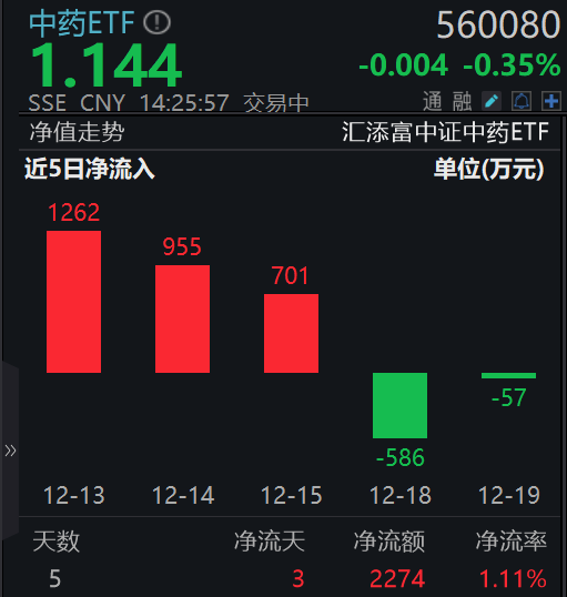 数据显示,杠杆资金持续布局中。中药ETF本月以来融资净买额达132.31万元,最新融资余额达5340.99万元。