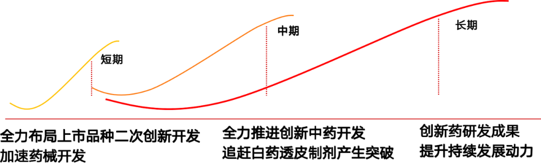 短期全力布局上市品种二次创新开发及快速药械开发;中期积极推进创新中药开发,同时深耕云南白药透皮制剂领域,持续打造云南白药透皮制剂明星产品,并围绕国家在创伤领域的重要需求进行全面布局;长期聚焦创新药研发成果转化,一方面聚焦优势独家中药品种、聚焦社会需求、科技赋能,打造高需求中药产品,另一方面以核药发展为中心,布局多个创新药物开发。