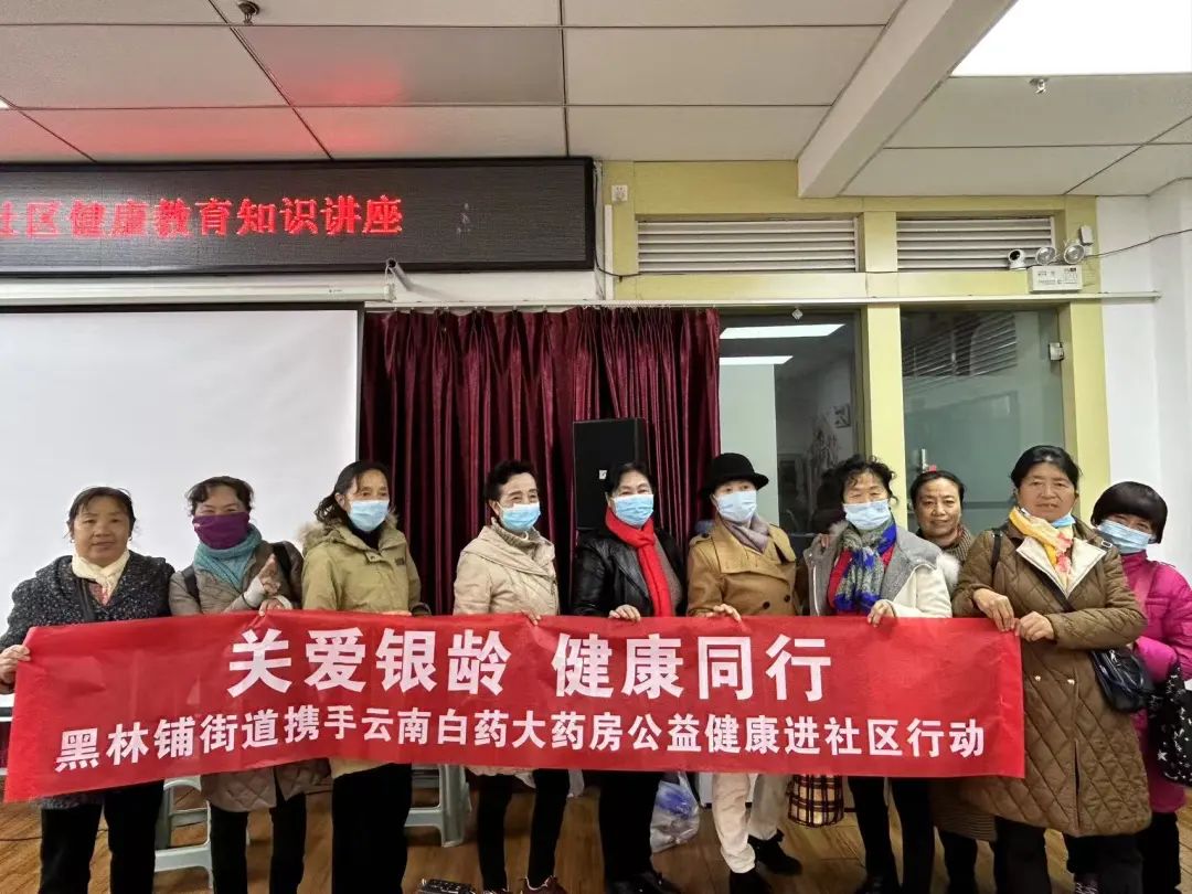 近日,为积极响应“健康中国2030”战略号召,云南白药大药房联合黑林铺街道携手开展“关爱银龄,健康同行”公益服务活动,旨在通过健康讲座、公益检测、药品安全宣传等多元化服务,提升中老年人的健康意识和生活质量,切实履行“守护生命与健康”的企业使命。