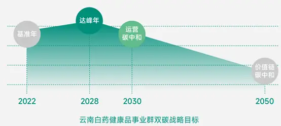 环境方面,云南白药健康品事业群贯彻策划、实施、检查、改进(PDCA)的管理理念,编制《云南白药健康品事业群碳管理手册》,明确碳管理组织架构和责任分工,规范碳排放信息与数据管理流程。同时,云南白药设定碳管理目标:“2028年完成碳达峰;2030年实现运营碳中和,可再生能源使用比例达到100%;2050年实现价值链碳中和”。