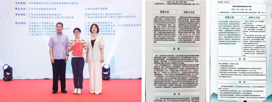 经大会学术委员会严格评审,药物安全性评价技术骨干代表受邀作专题报告,报告题目分别为《体外给药系统药代及毒代动力学研究设计探讨》《重复毒性试验中易导致药物脏器沉积的中药及其影响》《中药研发中的毒理学问题及安全性评价:毒性病理学视角》。《中药外用药物毒理试验设计考虑》、《天然药物体外细胞毒性临床前安全性评价研究初探》2篇研究成果获评为“优秀壁报”。