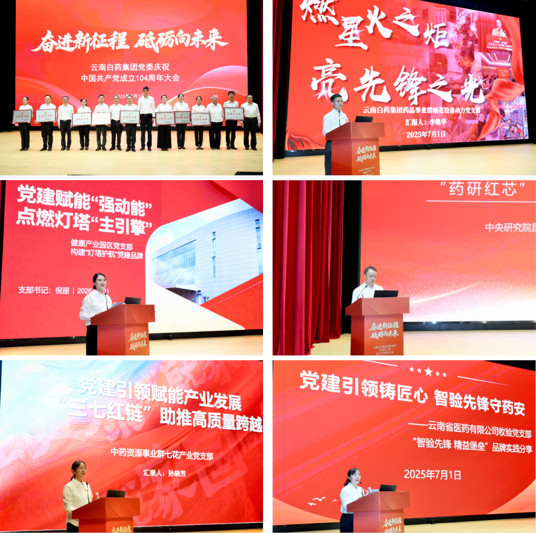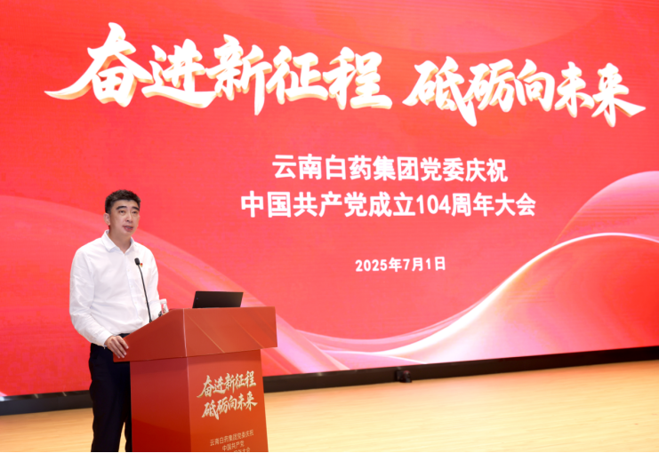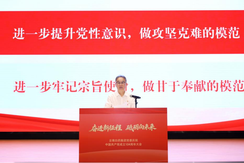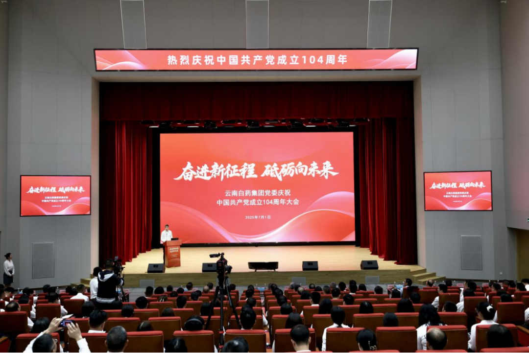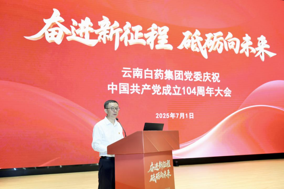 2025年7月1日,云南白药集团党委以“奋进新征程砥砺向未来”为主题,隆重召开庆祝中国共产党成立104周年大会。云南白药集团党委书记、董事长张文学讲授专题党课,副董事长、总裁董明主持会议。