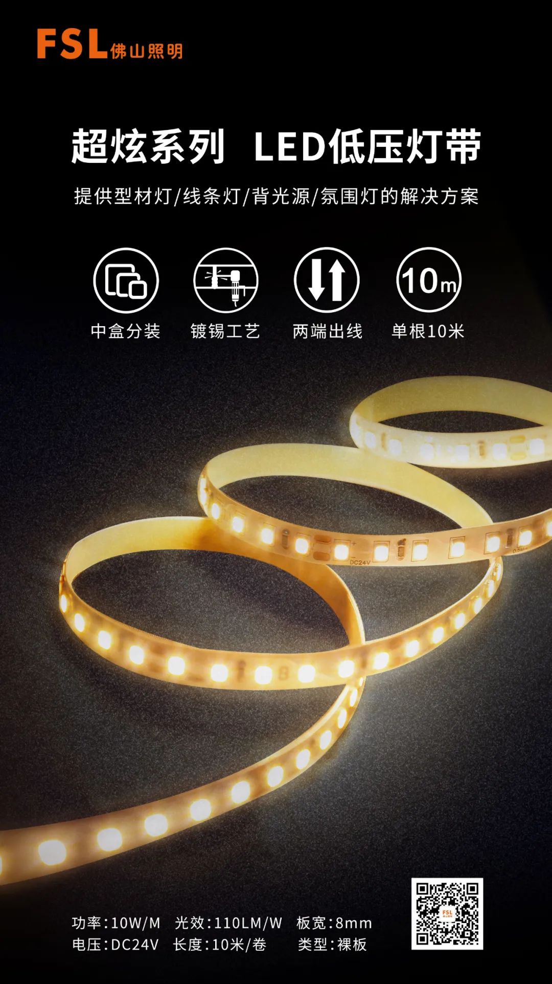 本次促销主打单品——佛山照明超炫系列低压灯带安装灵活使用方便,广泛适用于各类场景照明,采用高亮LED灯珠,三种色温可选。可根据场景氛围灵活呈现不同的照明形态,或直线、或弯曲,用灯光来提高空间的立体感和层次感。