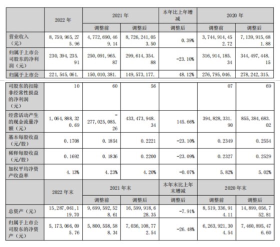 佛山照明近日发布2022年报。报告期内,公司实现营业收入87.60亿元,同比增长0.39%;归属于上市公司股东的净利润为2.3亿元,同比下降23.1%;扣非净利润2.22亿元,同比增长48.12%。