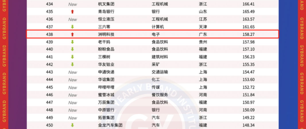 洲明科技以品牌价值158.27亿元,排名438。洲明科技成立于2004年,主营业务为LED智慧显示、LED智能照明,其光显产品及解决方案主要应用于文旅综合体、商业综合体、体育综合体、科技与艺术空间、影视综合体、城市光显、行业光显七大业务方向。