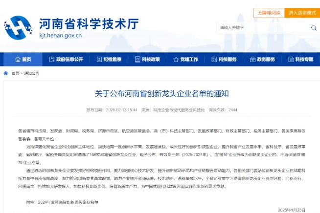 近日,河南省科技厅公布了“河南省创新龙头企业”名单,中原环保股份有限公司顺利通过遴选,成功入选“河南省创新龙头企业”,标志着中原环保的创新能力、技术实力得到高度认可,也彰显了公司在全省环保产业的引领地位。