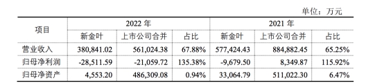 新金叶(合并口径)近两年主要财务情况