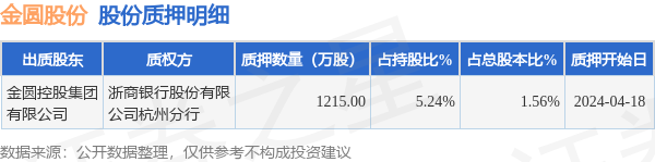 金圆股份(000546)4月20日公开信息显示,股东金圆控股集团有限公司向浙商银行股份有限公司杭州分行合计质押1215.0万股,占总股本1.56%。质押详情见下表: