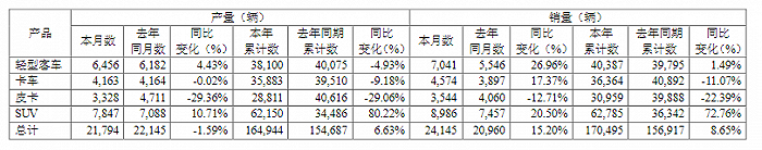 江铃汽车8月7日公告,公司7月合计生产21794辆,同比下降1.59%,7月合计销售24145辆,同比上涨15.2%。前7月累计销量170495辆,同比增长8.65%;产量164944辆,同比增长6.63%。