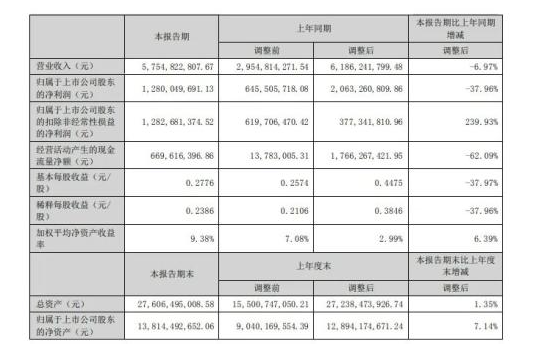 甘肃能化8月16日晚间披露2023年半年度报告,上半年实现营收57.55亿元,同比下降6.97%;归属于上市公司股东的净利润12.80亿元,同比下降37.96%。
