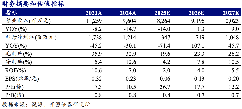 公司发布2024年报及2025一季报,2024年实现营收96亿元,同比-14.7%,归母净利润12.1亿元,同比-30.1%,扣非归母净利润11.5亿元,同比-33%;其中2024Q4实现营收18亿元,环比-17.2%,归母净利润1.8亿元,环比+35.8%,扣非归母净利润1.7亿元,环比+35.8%。2025Q1实现营收19.2亿元,同比-32.1%,归母净利润0.5亿元,同比-90.5%,扣非归母净利润0.2亿元,同比-95.5%。考虑到煤价回落,我们下调2025-2026年盈利预测并新增2027年盈利预测,预计2025-2027年归母净利润3.5/7.2/10.5亿元(2025-2026年前值为17.6/20.3亿元),同比-71.4%/+107.1%/+45.7%;EPS为0.06/0.13/0.20元,对应当前股价PE为36.7/17.7/12.2倍。考虑到公司煤炭业务仍有增量,煤化工新产能即将释放,新建电厂项目稳步推进,公司未来成长可期,维持“买入”评级。
