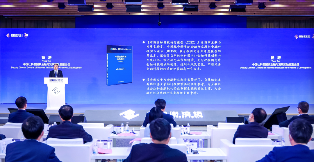 发布会现场,杨涛代表课题组从五个方面分享了《中国金融科技运行报告(2022)》的研究框架与要点。报告旨在系统分析国内外金融科技创新与发展状况、演进动态与市场前景,充分把握国内外金融科技领域的制度、规则和政策变化,不断完善金融科技的相关理论基础与研究方法。报告致力于为金融科技相关监管部门、自律组织及其他经济主管部门提供重要的决策参考,为金融科技企业和金融机构的业务探索提供有效支撑,为金融科技领域的研究者提供文献素材。